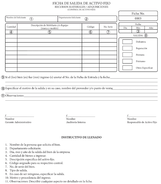 Todas las salidas de activo fijo tienen que ser del conocimiento del departamento de contabilidad y auditoría, mediante informe avalado por la gerencia administrativa. Esta normativa permitirá llevar un buen control de todos los bienes de activo fijo que la empresa posea a una fecha determinada.